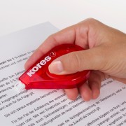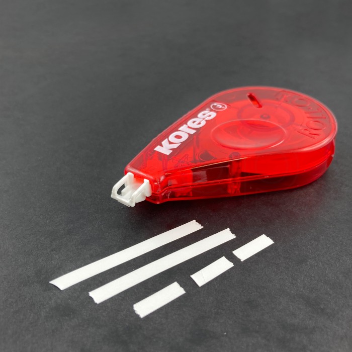 Opravná páska se zasouvacím hrotem. Originální ojedinělá "click" mechanika jako u kuličkových per, hrot s páskou zůstává chráněn, pokud není používán.