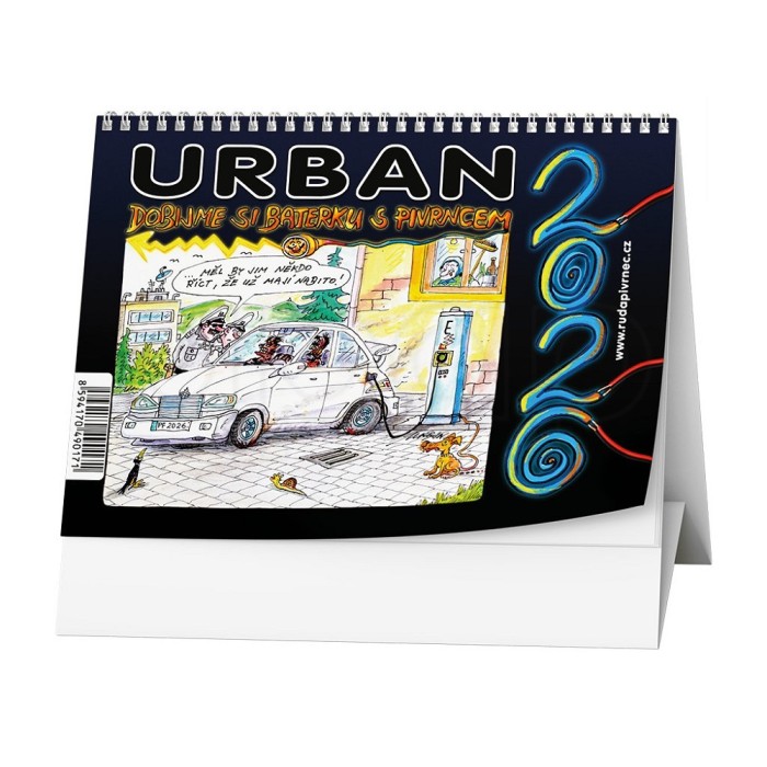 Máte málo energie? Dobijte si baterku s humorem Rudy Pivrnce! Stolní kalendář Urban 2026 přináší 53 týdnů plných originálních kreseb a nezaměnitelných hlášek tohoto populárního kreslíře. Sledujte Pivrncovy postřehy k modernímu životu, technologiím a mezilidským vztahům. Kalendář nabízí přehledné týdenní kalendárium s českými jmény, svátky a místem pro poznámky. Skvělý společník na pracovní stůl, který zaručeně pobaví.
