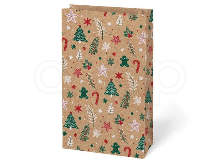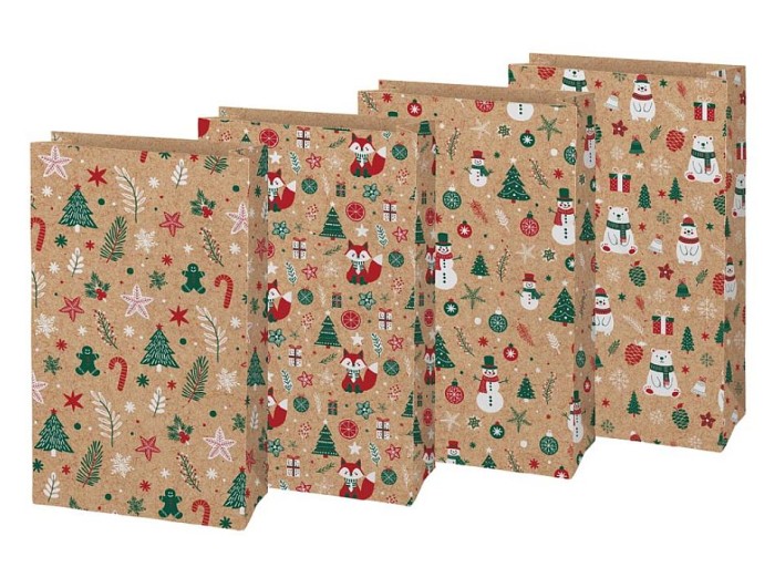 Papírová dárková taška, vánoční motiv, pevné ucho, štítek. Mix designů.